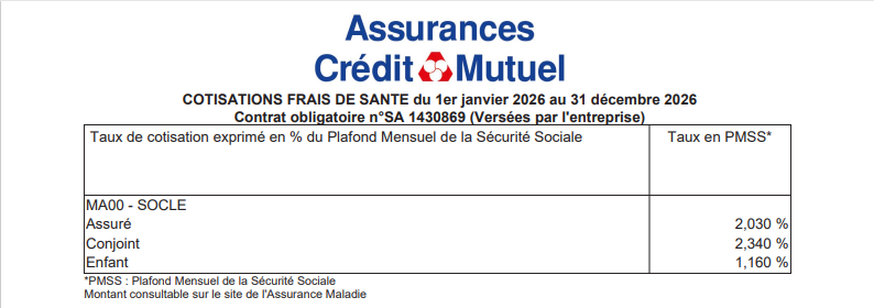 Tarifs pour l’année 2026